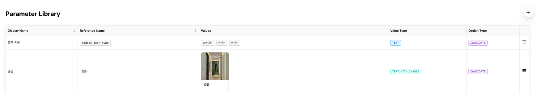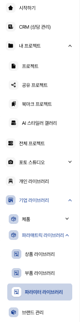 파라메트릭 라이브러리 > 파라미터 라이브러리 진입