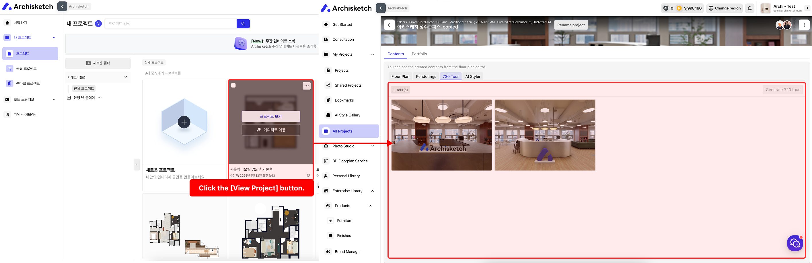 1.2. On the project details page, go to the [Contents > 720 Tour] tab and click the 720 Tour card.