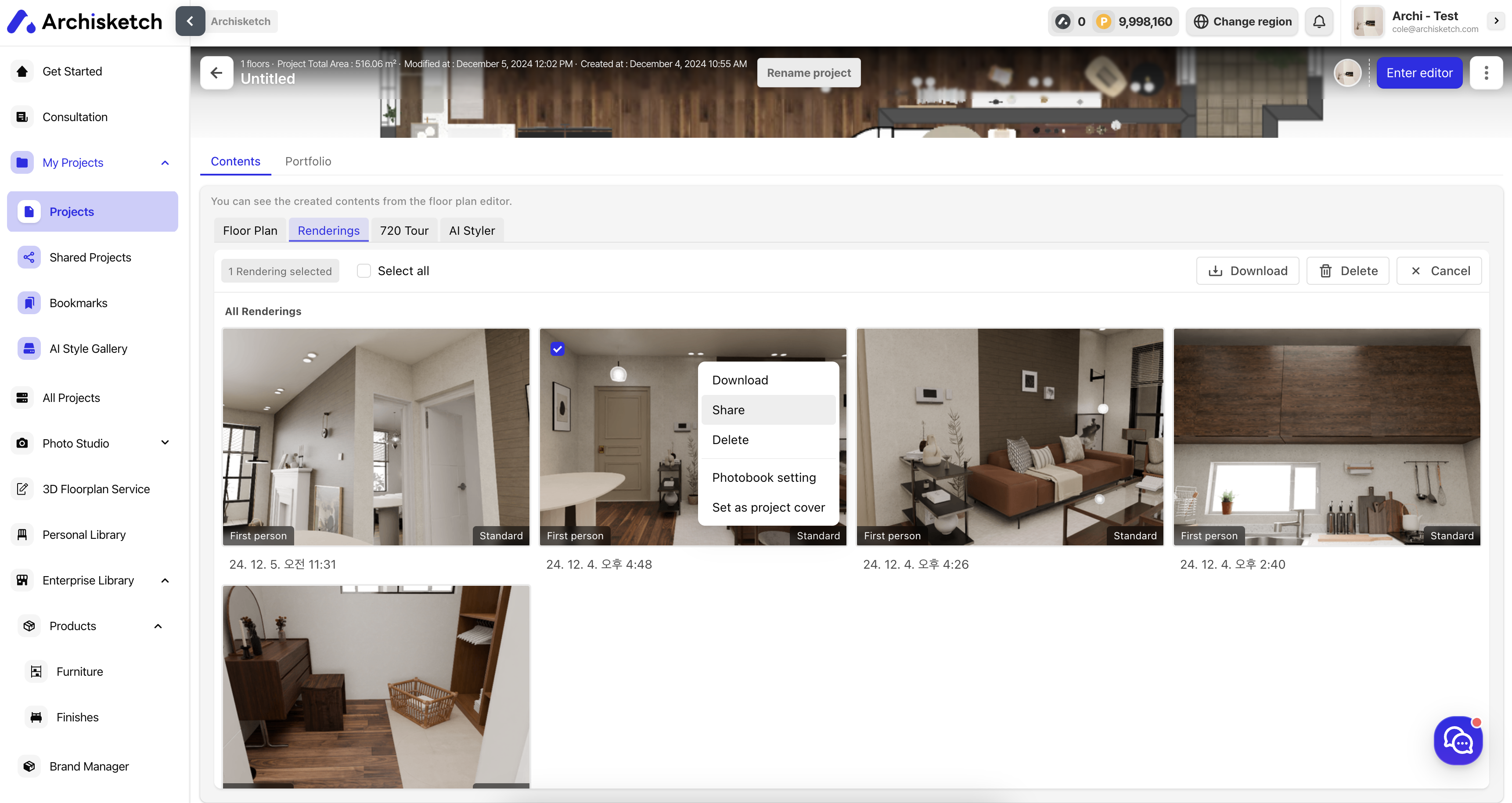 1.2. On the project details page, navigate to the [Contents > Render Shots] tab and click on a Render Shot card.